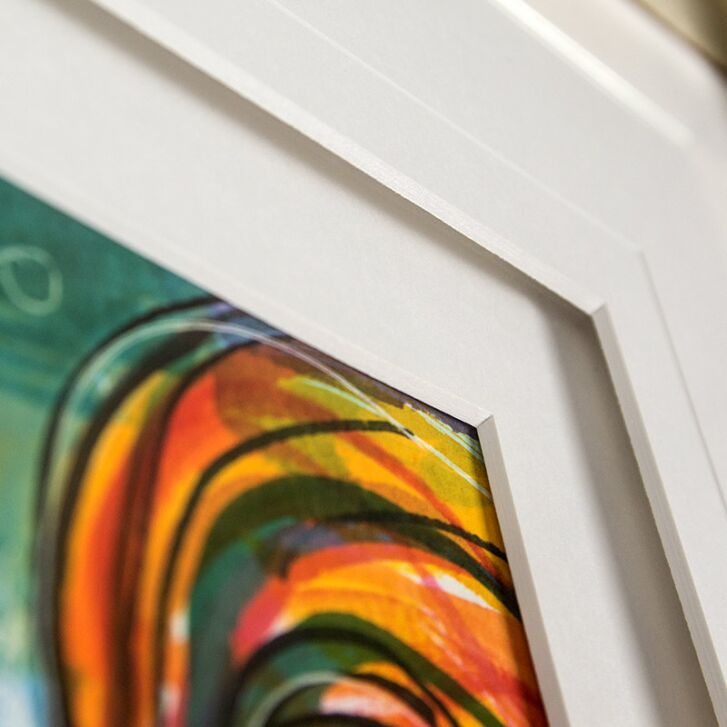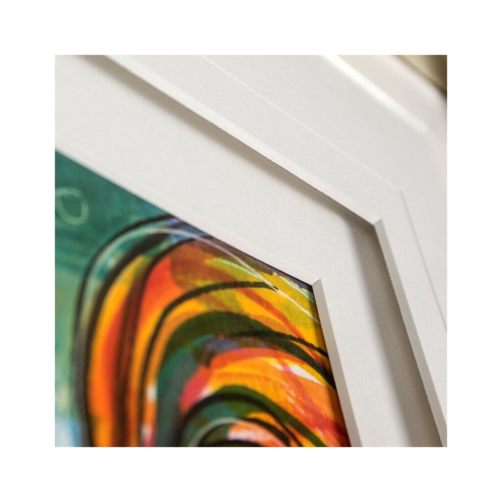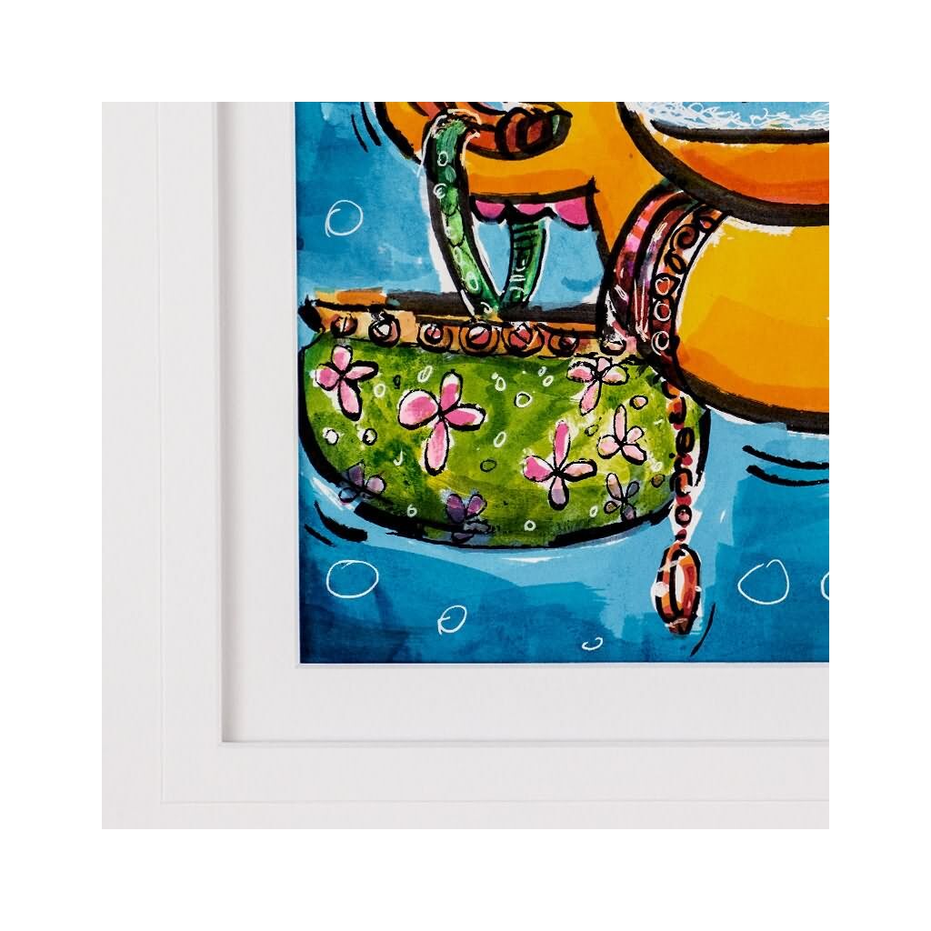 Das Original Aquarell ist umrandet von einem Doppel-Passepartout und befindet sich in einem – rückseitig verklebten - hochwertigen silberfarbenen Holzrahmen.