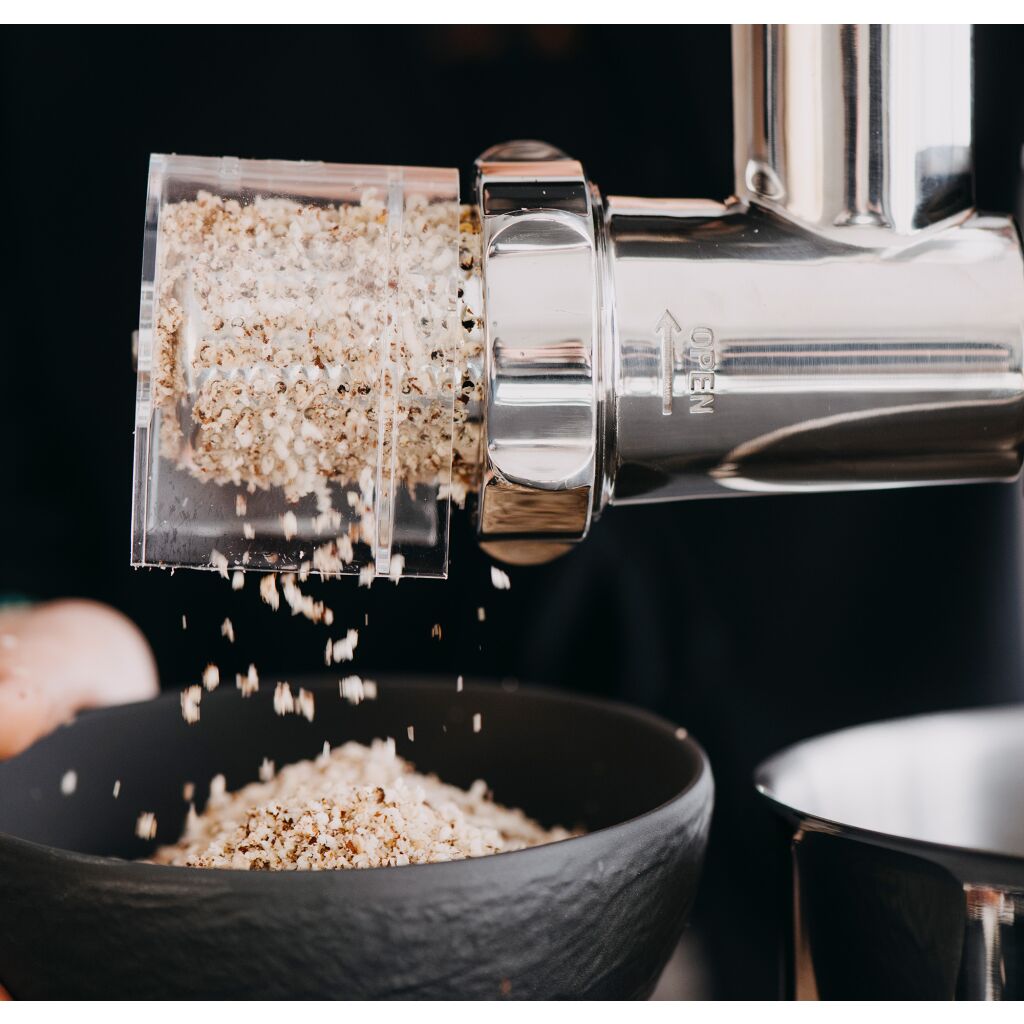 Mit dem Reibevorsatz erweiterst du die Möglichkeiten deines Fleischwolfs „Schredder“. So wird Kochen und Backen nicht nur einfacher, sondern auch kreativer. Nutze die Flexibilität, um neue Rezepte auszuprobieren und frische Zutaten zu kombinieren.