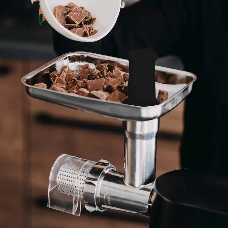 - Schokolade raspeln: Schokolade für Kuchen oder Desserts zu raspeln war noch nie so einfach. Der Reibevorsatz übernimmt die Arbeit sauber und gleichmäßig – kein mühsames Schneiden mit dem Messer mehr!