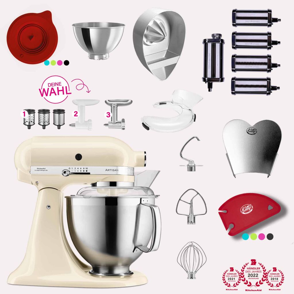 Du findest diese wunderschöne KitchenAid Artisan Küchenmaschine natürlich auch in allen unseren Artisan Spar-Sets mit extra viel Zubehör zum Sonderpreis.