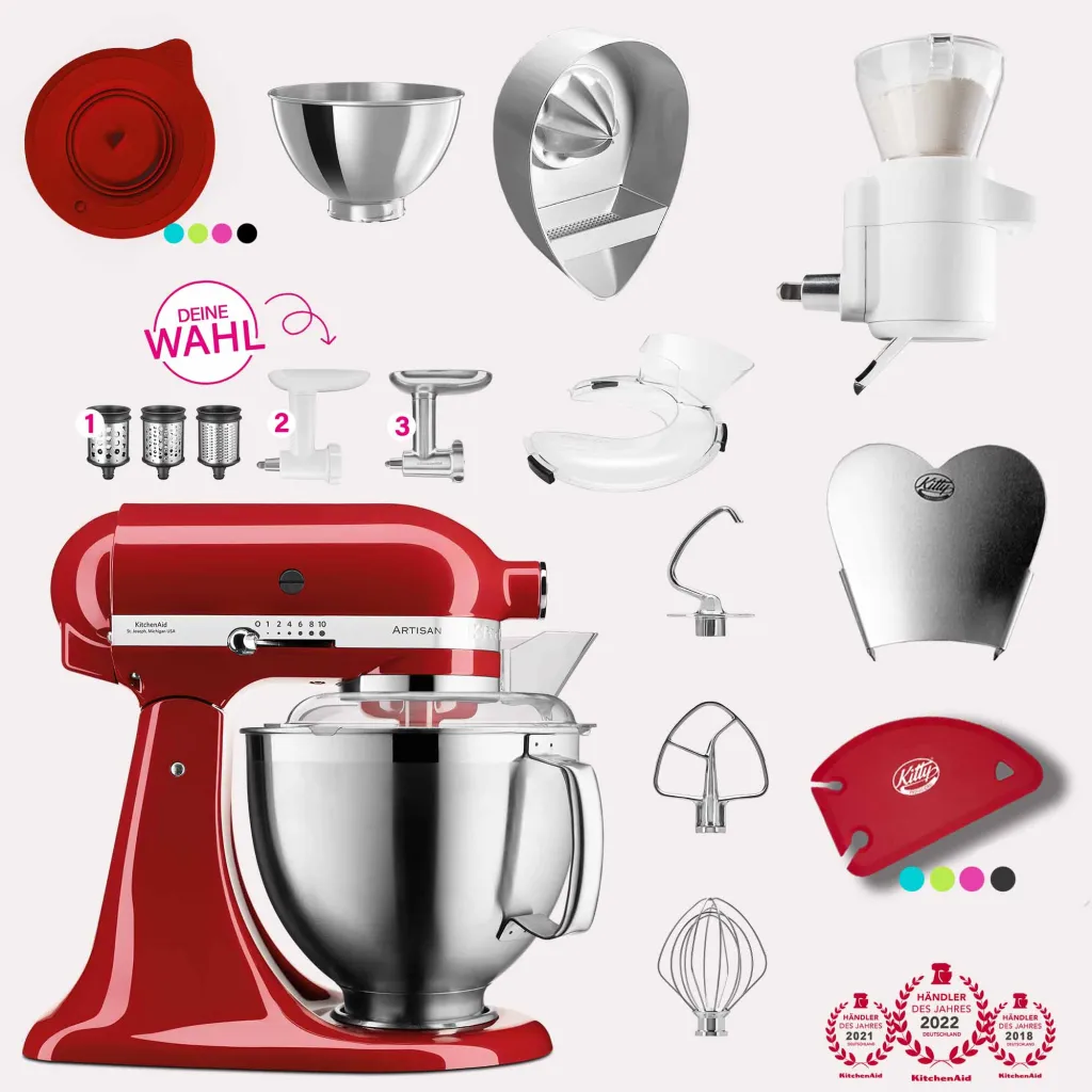Du findest diese wunderschöne KitchenAid Artisan Küchenmaschine natürlich auch in allen unseren Artisan Spar-Sets mit extra viel Zubehör zum Sonderpreis.