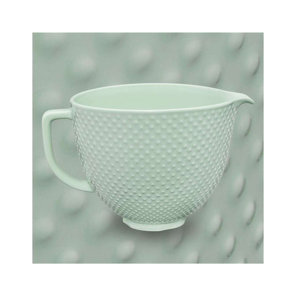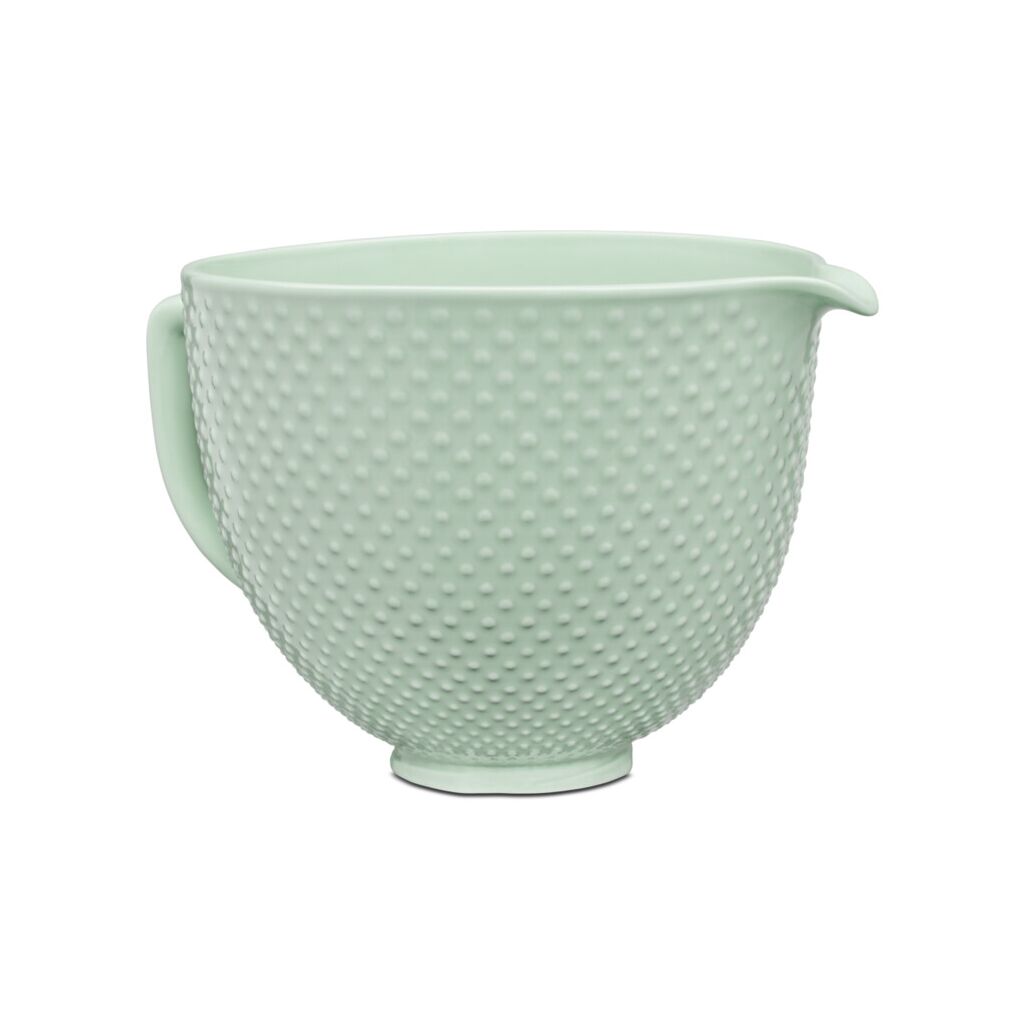 Mit der KitchenAid Keramikschüssel Dew Drop kommt Struktur in Deine Küche. Und welch herrlicher Kontrast obendrein: Die klare, punktförmige Oberflächenprägung im Verbund mit den weichen Formen einer KitchenAid Küchenmaschine. Eine spannende und wunderschöne Kombination! Das beruhigende Pastellgrün der KitchenAid Dew Drop ist dabei zurückhaltend und elegant. Mit dieser hochwertigen KitchenAid Keramikschüssel weht strukturierte Frische durch Deine Küche, bringt Ruhe auf Deine Arbeitsfläche und verleiht Deiner Küchenmaschine einen exklusiven Look.