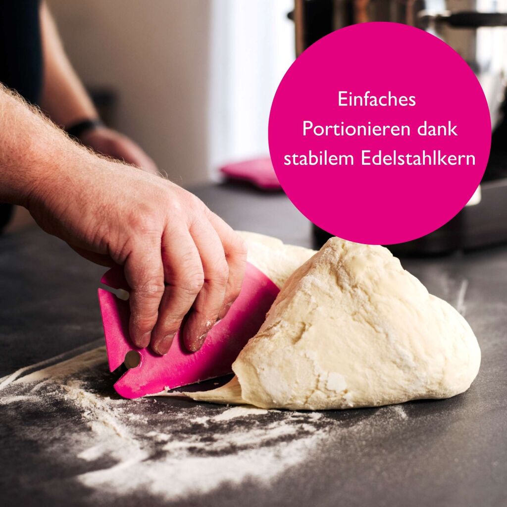 • Die gerade, robuste Kante auf der Unterseite: ideal zum Teig portionieren