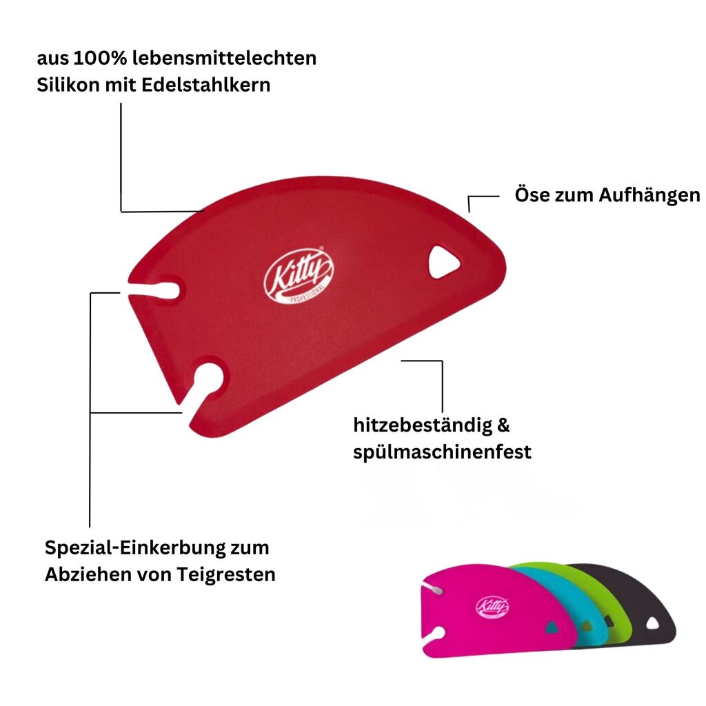 Mit dieser Teigkarte bekommst du deine Schüssel nicht nur restlos sauber, dank ihres weichen Silikonüberzugs brauchst du dir auch keine Gedanken mehr über zerkratzte Oberflächen zu machen.