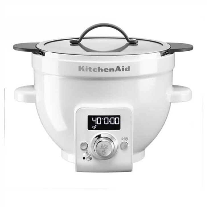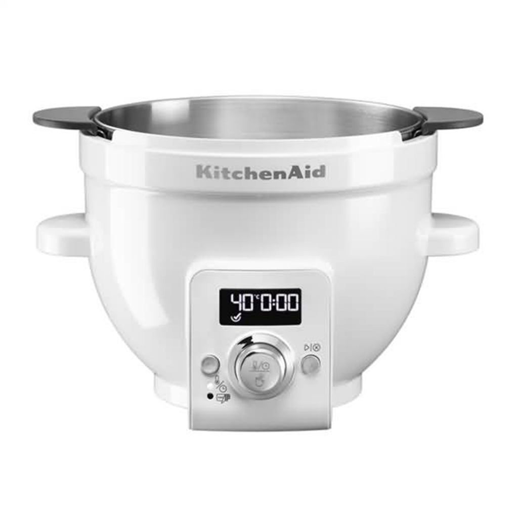 Die beheizbare Rührschüssel erweitert Deine KitchenAid Küchenmaschine um einen ganz wichtigen Bereich: Sie ersetzt Dir z.B. das Wasserbad, ist aber keine Kochschüssel! Möchtest Du ein tolles Kochgerät aus dem Hause KitchenAid, mit dem Du bis zu 140°C erreichen (und damit also Braten) kannst, empfehlen wir Dir den KitchenAid Cook Processor.