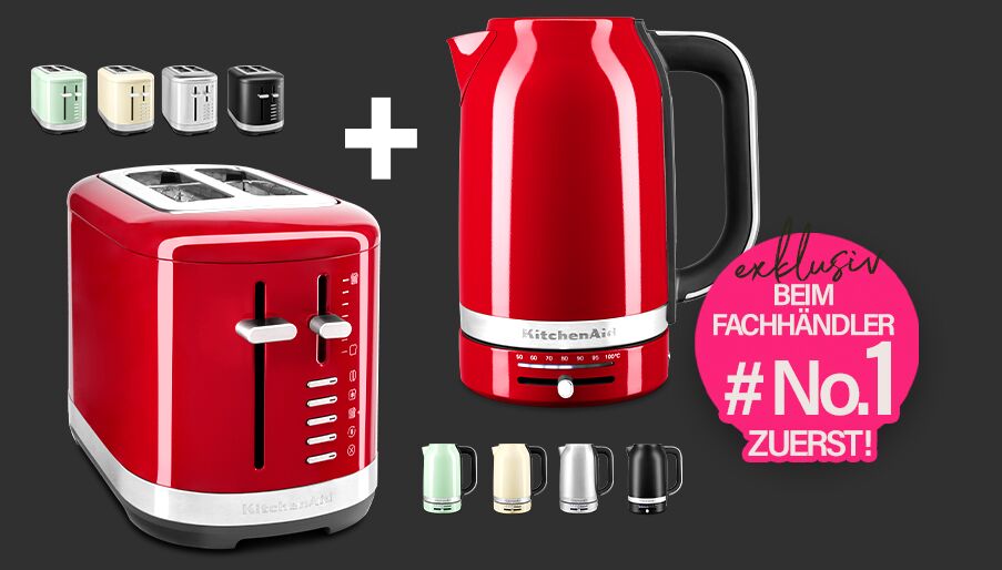 Wir bieten neben der klassischen Küchenmaschine selbstverständlich auch andere Küchengeräte von Kenwood und KitchenAid an. Denn diese beiden Hersteller beweisen nicht nur durch ihre Küchenmaschinen, dass sie praktische, durchdachte und zuverlässige Küchenhelfer herstellen können. Auch die anderen Geräte dieser Hersteller stehen in Qualität und Verlässlichkeit einer Küchenmaschine in nichts nach. Zum Beispiel der KitchenAid Cook Processor, der mit seinen vielen Rezeptprogrammen nicht nur eine Fülle verschiedenster Gerichte auf den Esstisch bringt, sondern so konzipiert ist, dass man ein komplettes Gericht in einem Durchgang kochen kann. Gleiches gilt für die Blender und Standmixer von KitchenAid, denn auch hier überzeugt Qualität und Leistung. Sei es beim KitchenAid Power Plus, beim High Performance Series Blender, oder dem brandneuen K400. Kein Standmixer von KitchenAid ist so flexibel in seinen Einsatzmöglichkeiten, wie dieser neue K400. Ähnlich flexibel sind aber auch die Stabmixer von KitchenAid. Diese kommen - wie eine Küchenmaschine - mit einer Fülle an Zubehör und sind selbstverständlich in unserem Onlineshop vertreten. Genauso wie Handrührgeräte, Kessel, Wasserkocher, Toaster, die wir allesamt in unserer Kategorie KitchenAid Küchengeräte übersichtlich zusammengefasst haben. Viel Spaß beim Stöbern! Denn: Auch wenn es keine Küchenmaschine sein soll, wirst du bestimmt bei uns fündig.