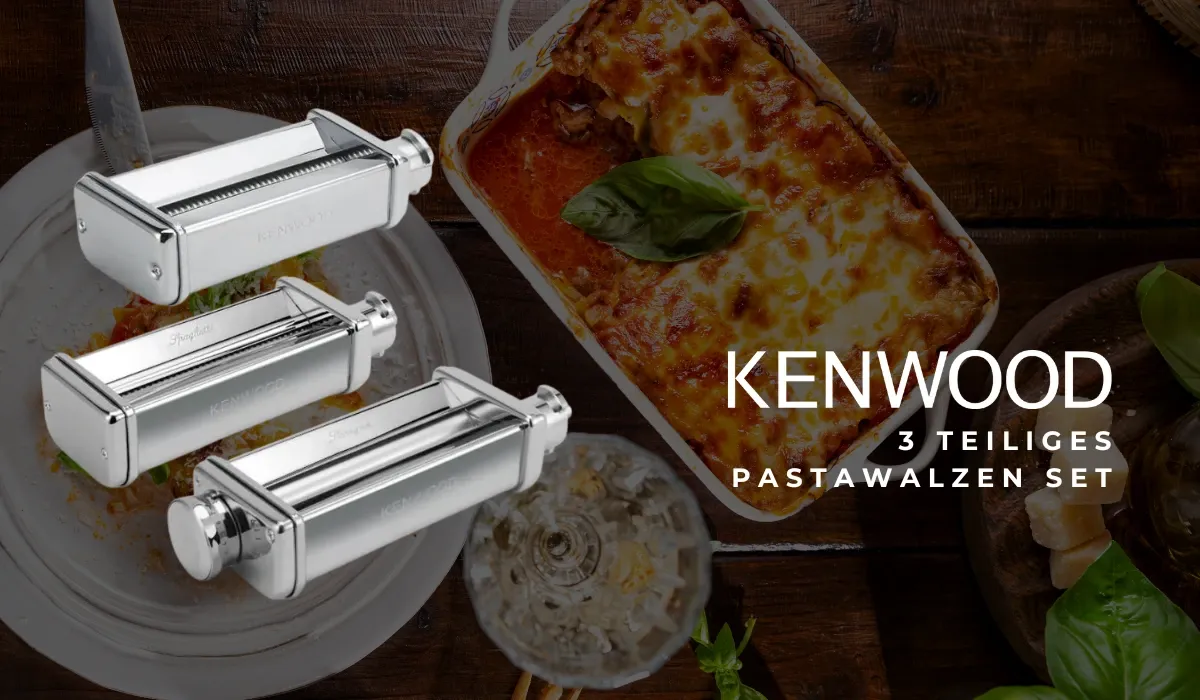Verwöhne deine Liebsten mit frischer Pasta, die du ganz einfach mit den Kenwood 3.tlg Pastawalzen-Set zubereitest.