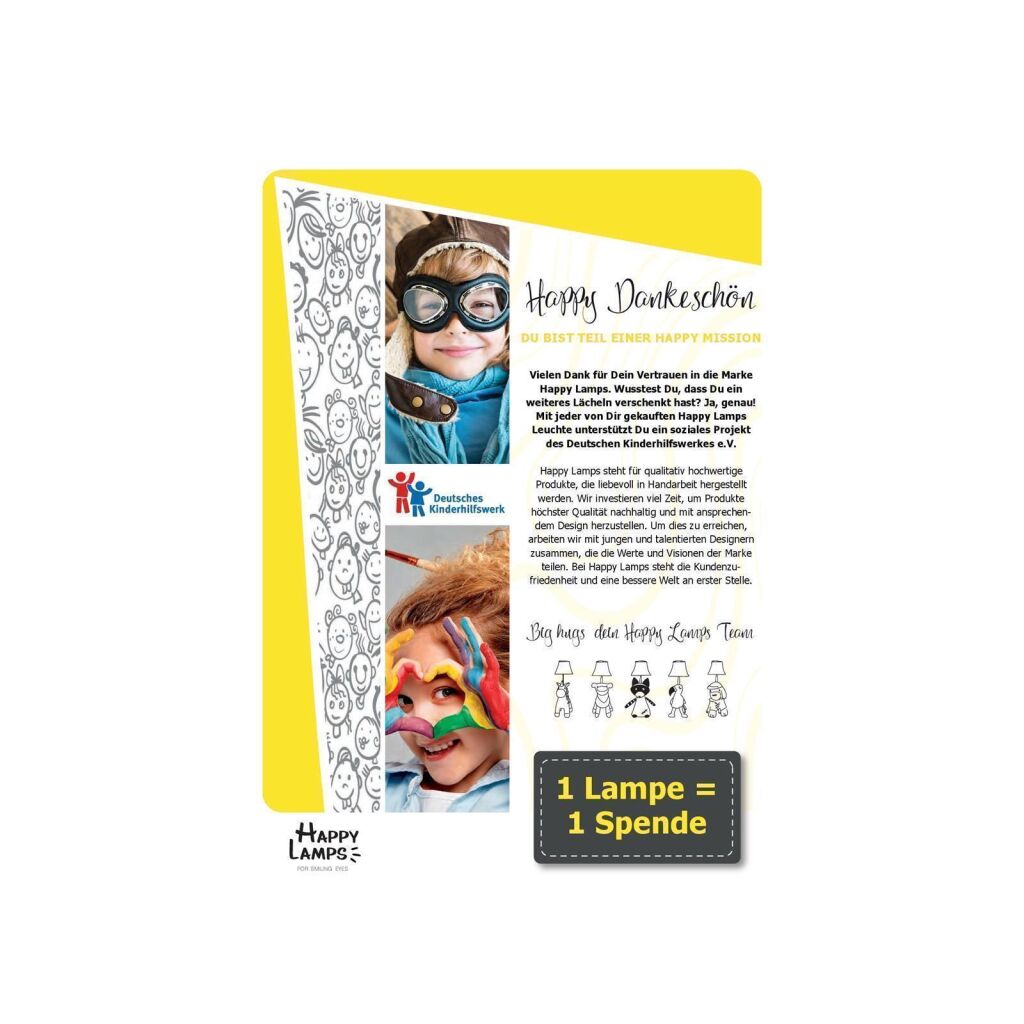 Die Happy Lamps überzeugen nicht nur mit ihrem fröhlichen Design, das Kinder und Erwachsene gleichermaßen begeistert und zum Anfassen einlädt. Damit die Lampen auch absolut sicher sind, werden sie von Hansecontrol streng geprüft und nach den höchsten Sicherheitsstandards zertifiziert.