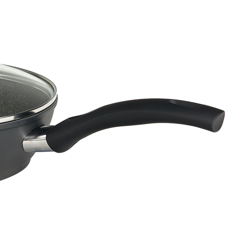 Die Ballarini Schmorpfanne besteht aus kaltgeschmiedetem Rein-Aluminium und verfügt über die hochwertige Granium-Antihaftbeschichtung innen sowie eine schwarze Außenbeschichtung für zusätzliche Robustheit und eine lange Lebensdauer. Der polierte Bimetall-Boden aus Aluminium und Stahl sorgt für eine kurze Aufheizdauer und macht die Pfanne geeignet für alle Herdarten, inklusive Induktion.