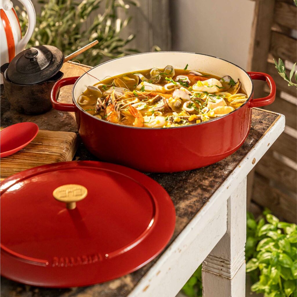 - Hitzebeständig & Aromastark: Im gusseisernen Bellamonte-Bräter von BALLARINI sorgt die gleichmäßige Wärmeverteilung für eine perfekte Bräunung, intensive Röstaromen und einen besonders vollen Geschmack.