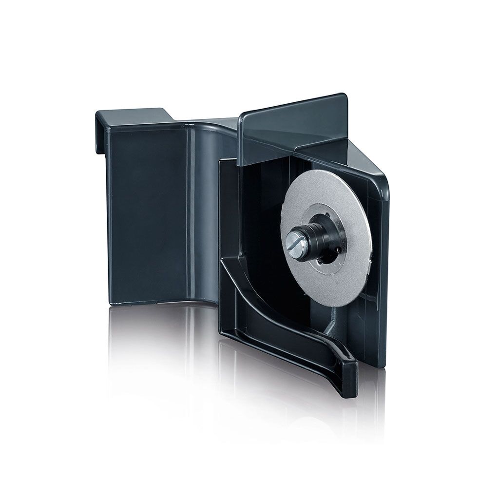 Mit einem Handgriff lässt sich die Messerscheibe mit Hilfe des beiliegenden Messerhalters schnell und sicher zur Reinigung aus dem Gehäuse nehmen und wieder einsetzen. So kannst Du einfach und bequem die Klinge von Lebensmittelresten säubern. Und wenn die Klinge nach vielen Einsätzen einmal an Schärfe verlieren sollte, so liegt dem GRAEF Feinschneider SKS700 als gratis Zubehör ein Diamant-Messerschleifer bei, mit dem Du zu Hause das Messer sehr leicht nachschleifen kannst.