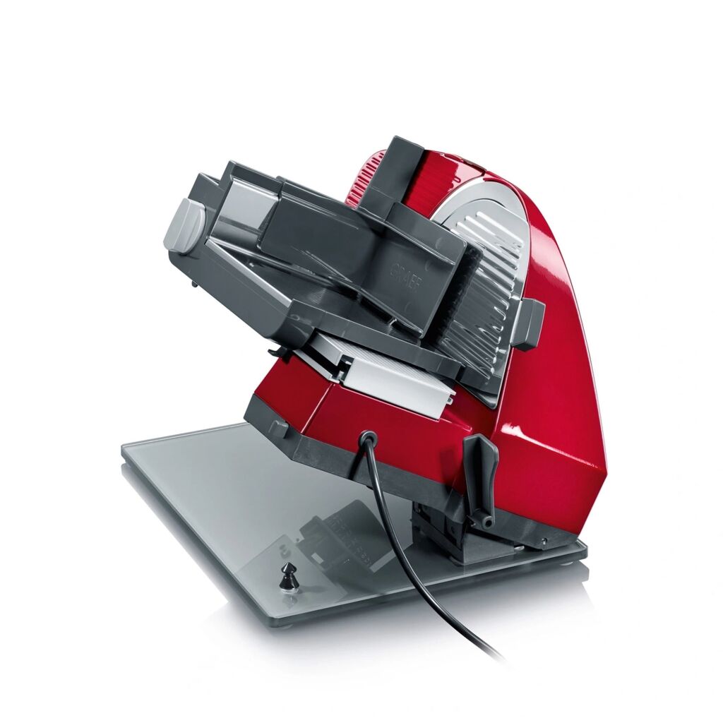 - freitragender Vollmetall-Allesschneider in Liebsapfelrot - „Handmade in Germany“ auf höchstem Niveau