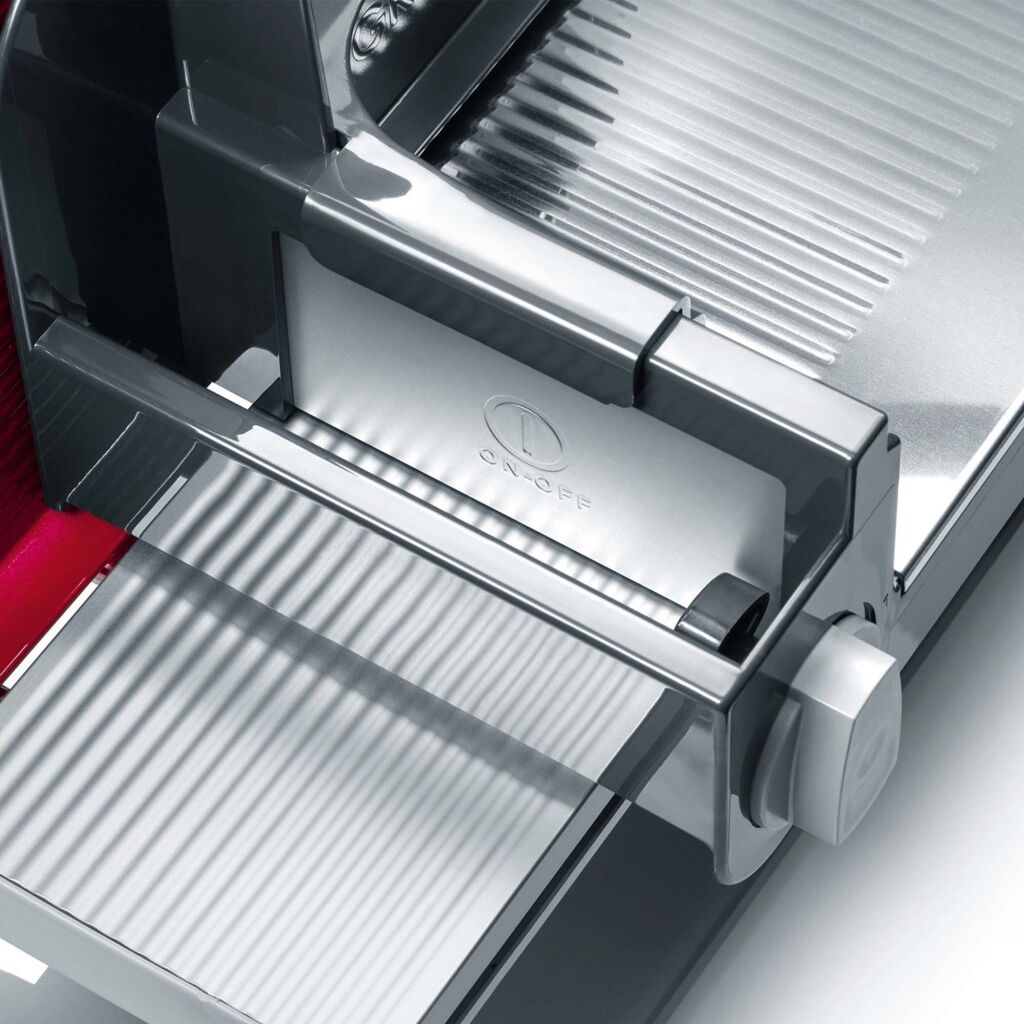 - dank einzigartiger Schlittenschaltung mit Moment- und Dauerfunktion können wahlweise einzelne Scheiben oder ganze Stücke aufgeschnitten werden