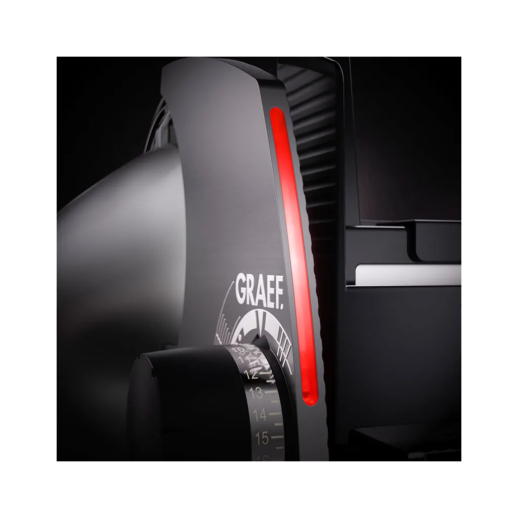 Der erste Feinschneider mit Safety-Control Sicherheit wird bei diesem GRAEF Feinschneider groß geschrieben, oder besser gesagt: Beleuchtet! Denn Einstellskala und Schnittbereich sind illuminiert für ein ganz besonders sicheres Arbeiten, bei dem Du alles im Blick behältst und Dir nichts entgeht. Zudem signalisiert Dir die LED-Leiste auf der Vorderseite des GRAEF SKS700 nach einer Minute Untätigkeit, dass das Messer noch hochgeklappt ist, indem die Farbe von Blau zu Rot wechselt. So wirst Du daran erinnert, dass das Gerät einsatzbereit ist, damit Du es nicht versehentlich betriebsbereit zurücklässt.