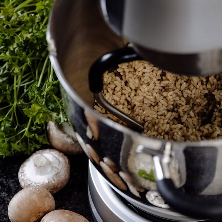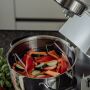 Das Induktionskochfeld heizt bei der Kenwood Cooking Chef Black XL besonders schnell auf. Die Temperatur ist von 20°C bis 180°C frei wählbar und wird auf zwei Grad genau gehalten. Damit kannst Du nicht nur Teige sanft in der Schüssel dieser wunderbaren Küchenmaschine gehen lassen, sondern ebenso kochen und herrlich scharf anbraten. Mit dem Koch-Rührelement werden die Zutaten schonend gerührt und gewendet. In dem von Dir vorgegebenen Zeitintervall. Da brennt nichts mehr an. Die 13 verschiedenen Programme für gängige Basisrezepte leiten Dich wie eine gute Freundin durch die Zubereitung und stellen Temperatur, Timer und Rührintervall automatisch für Dich ein. Die integrierte Waage macht das Arbeiten mit der Kenwood Connect noch einfacher. Weil die Waage in den Standfüßen verbaut ist, kannst Du auch im angeschlossenen Zubehör wiegen, zum Beispiel direkt im Mixaufsatz!