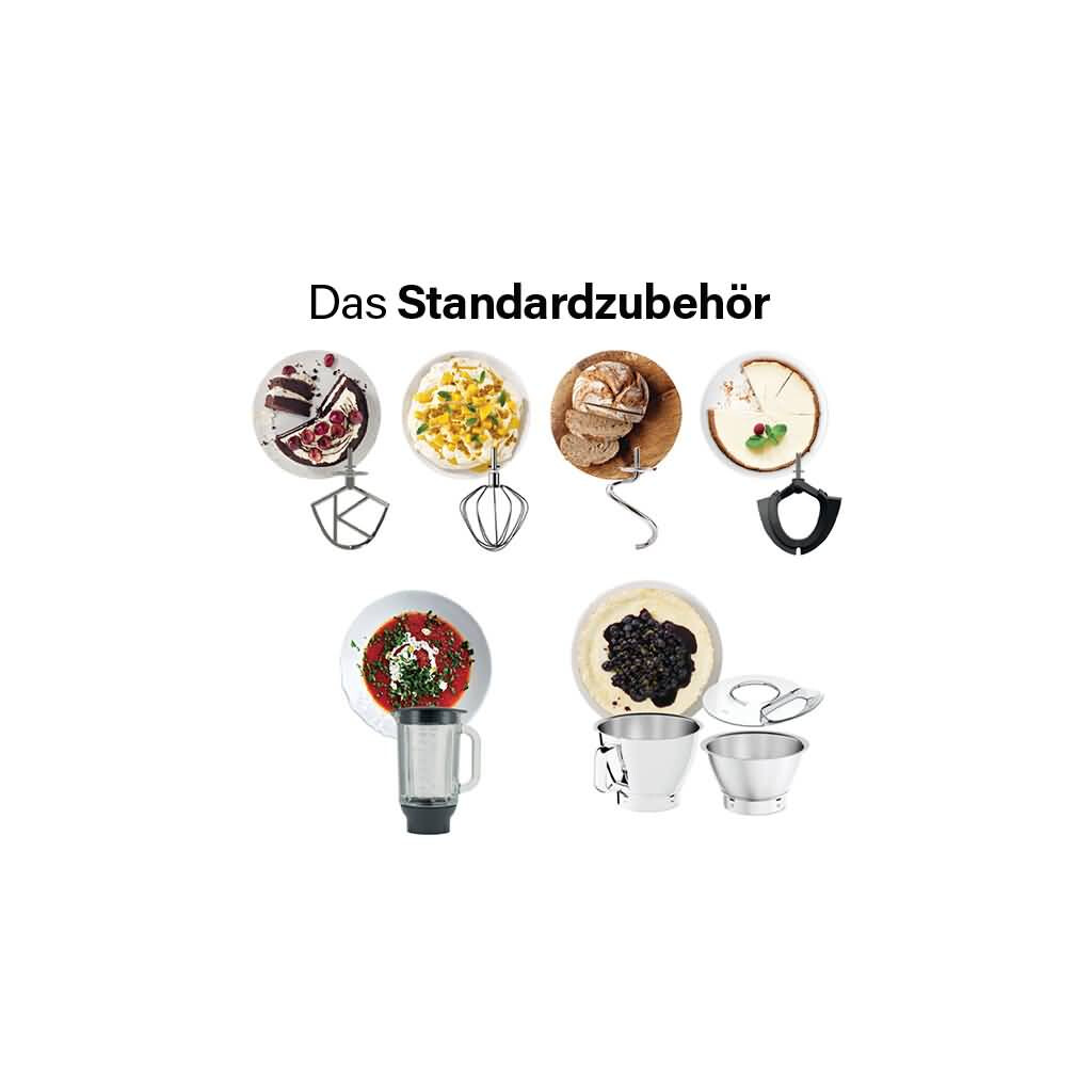 Dann könnte diese Küchenmaschine von Kenwood mit Duo-Bowl, bestehend aus 5 und 3,5 Litern Dein Interesse wecken. Die neue Kenwood Baker wurde gemeinsam mit einer größeren Variante vorgestellt und ist zur Zeit das aktuellste Modell des Herstellers. Neue Features sind unter anderem die Integrierte Waage welche grammgenau bis zu 6kg wiegen kann! Du kannst vor dem Backen oder während der Zubereitung abwiegen oder sogar direkt im Zubehör (Mixer oder Zerkleinerer). So verursachst du weniger Schmutz und sparst jede Menge Zeit!
