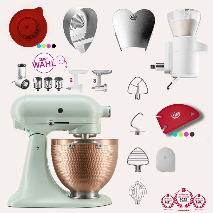 Du findest diese wunderschöne KitchenAid Artisan Küchenmaschine natürlich auch in allen unseren Artisan Spar-Sets mit extra viel Zubehör zum Sonderpreis.