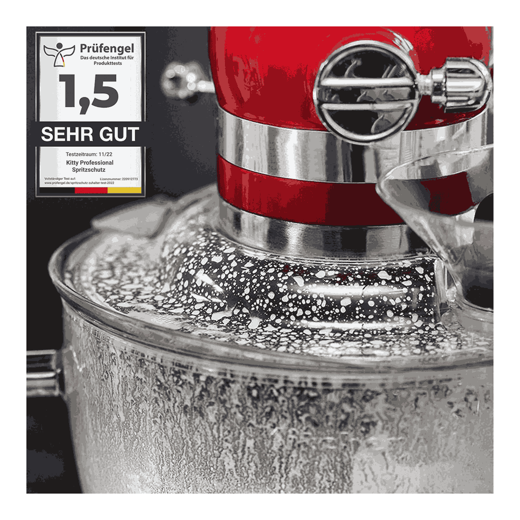 - 360° Rundum-Schutz. Schützt dadurch vor mindestens 98% aller Spritzer aus der Schüssel heraus in Deine Küche.