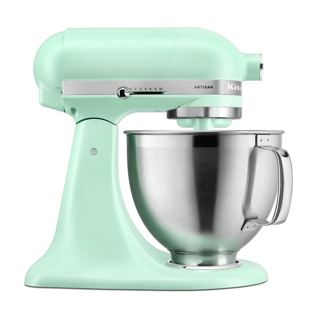 Die vielseitige Artisan Küchenmaschine mit kippbarem Motorkopf in einem lebendigen Minzgrün bringt frische Energie in jede Küche. Mit einem satinierten Finish fügt sie sich harmonisch in jedes Zuhause ein und schafft eine frische Atmosphäre.