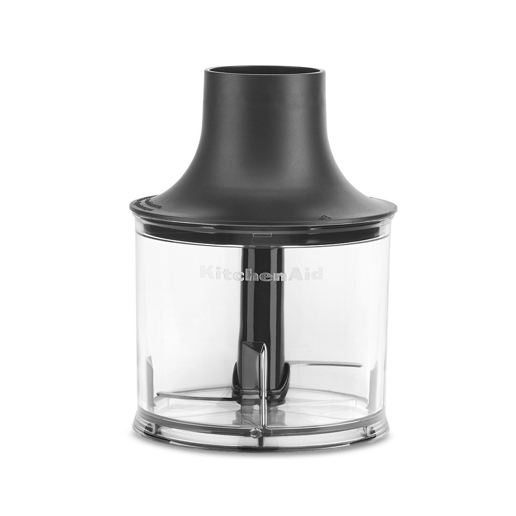 Der Mixarm aus Edelstahl kommt mit extra scharfen Klingen. Dazu bringt dieser KitchenAid Stabmixer noch einen Edelstahl-Schneebesen mit. Der ist ideal für das Abbinden von Saucen, für frische Salatdressings und sogar für kleine Mengen Sahne geeignet. Ein Zerkleinerer für Nüsse, Kräuter und Käse mit Schüssel, Messer und Adapter runden den Lieferumfang ab. Genauso wie der 1 Liter fassende Mixbecher mit Deckel.