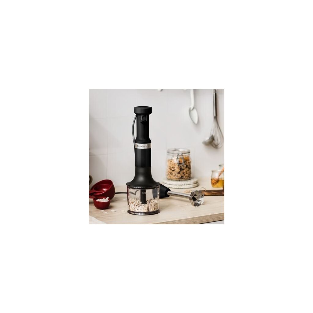 Scharfe Klingen und mit einer Fülle von Zubehör wird dieser KitchenAid Stabmixer in matt Schwarz sicherlich nicht viel Zeit zum Ausruhen in deiner Küche haben. Kräuter und Nüsse hacken, Suppen, Cremes und Saucen pürieren, Dips, Dressings und Sahne aufschlagen - ganz egal, was dein Vorhaben auch ist: Dieser KitchenAid Stabmixer 5KHBV83EER ist das richtige Werkzeug dafür. Ein rundum talentierter Küchenhelfer und dank dem wunderschönen KitchenAid Design auch rundum gutaussehend.