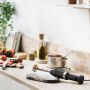 Typisch für KitchenAid ist der kleine, aber extrem praktische Topfschoner. Diesen setzt du bei Bedarf auf den Messerfuß dieses Stabmixers und schonst so deine Töpfe und deine Keramik vor Kratzern. So kannst du mit dem 5KHBV83 sorgenfrei loslegen und alles kleinmachen, was in deiner Küche püriert werden soll. Und bei alledem liegt dieser wunderschöne Stabmixer ganz besonders gut in der Hand und lässt sich dank seiner durchdachten Ergonomie einfach, bequem und ohne Kraftaufwand bedienen.
