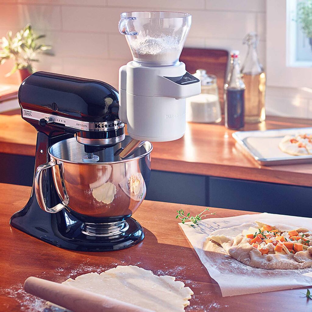 Für diese Probleme hat KitchenAid etwas neues, revolutionäres auf den Markt gebracht - den "Sifter" - so heißt er in der Community umgangssprachlich. Dieses KitchenAid Sieb mit Waage wiegt und siebt deine Zutaten im laufenden Betrieb und gibt diese peu à peu in die Schüssel. Während die Küchenmaschine arbeitet, werden Deine Zutaten so sanft hinzu gegeben.