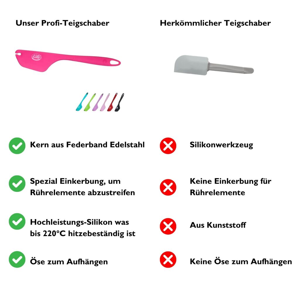 - einen praktischen Teigschaber für verschiedene Aufgaben
