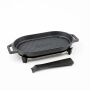 Entdecke die ovale gusseiserne Grillpfanne mit praktischem Griff und einem Stahluntersetzer – perfekt für deinen Ooni Koda 12, Koda 16, Karu 12, Karu 16 oder Ooni Fyra 12 Pizzaofen.