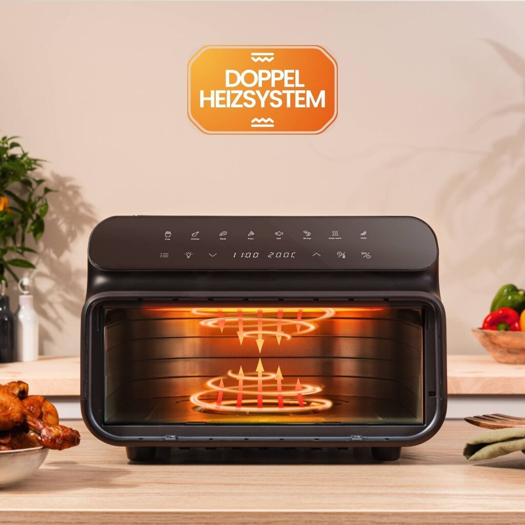 - ✔ Doppelte Heizelemente: Oben und unten sorgen für gleichmäßiges Garen und perfekte Ergebnisse.