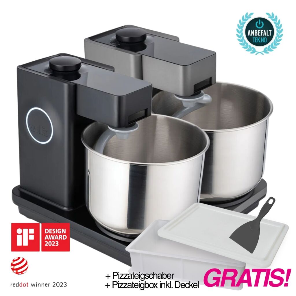| Lieferumfang | Knethaken, Flexi-Rührer, Doppelschneebesen, Spritzschutz, Teigschaber, 7-Liter-Rührschüssel aus Edelstahl, Pizzateigbox, Pizzateigschaber |