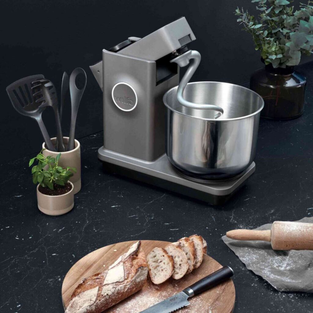 Die graue Wilfa Probaker beeindruckt mit einem kraftvollen 700-Watt-Direktantrieb und einem Gleichstrommotor, der dank seines kurzen Motorkopfes die Leistung optimal auf den Teig überträgt. Mit einem beeindruckenden Drehmoment von 110 Newtonmetern wird dein Teig kraftvoll und gleichmäßig durchgeknetet – und das bei einer Teigmenge von bis zu 5 kg in der großzügigen 7-Liter-Schüssel. Das schlichte skandinavische Design fügt sich dezent und stilvoll in jede Küche ein.