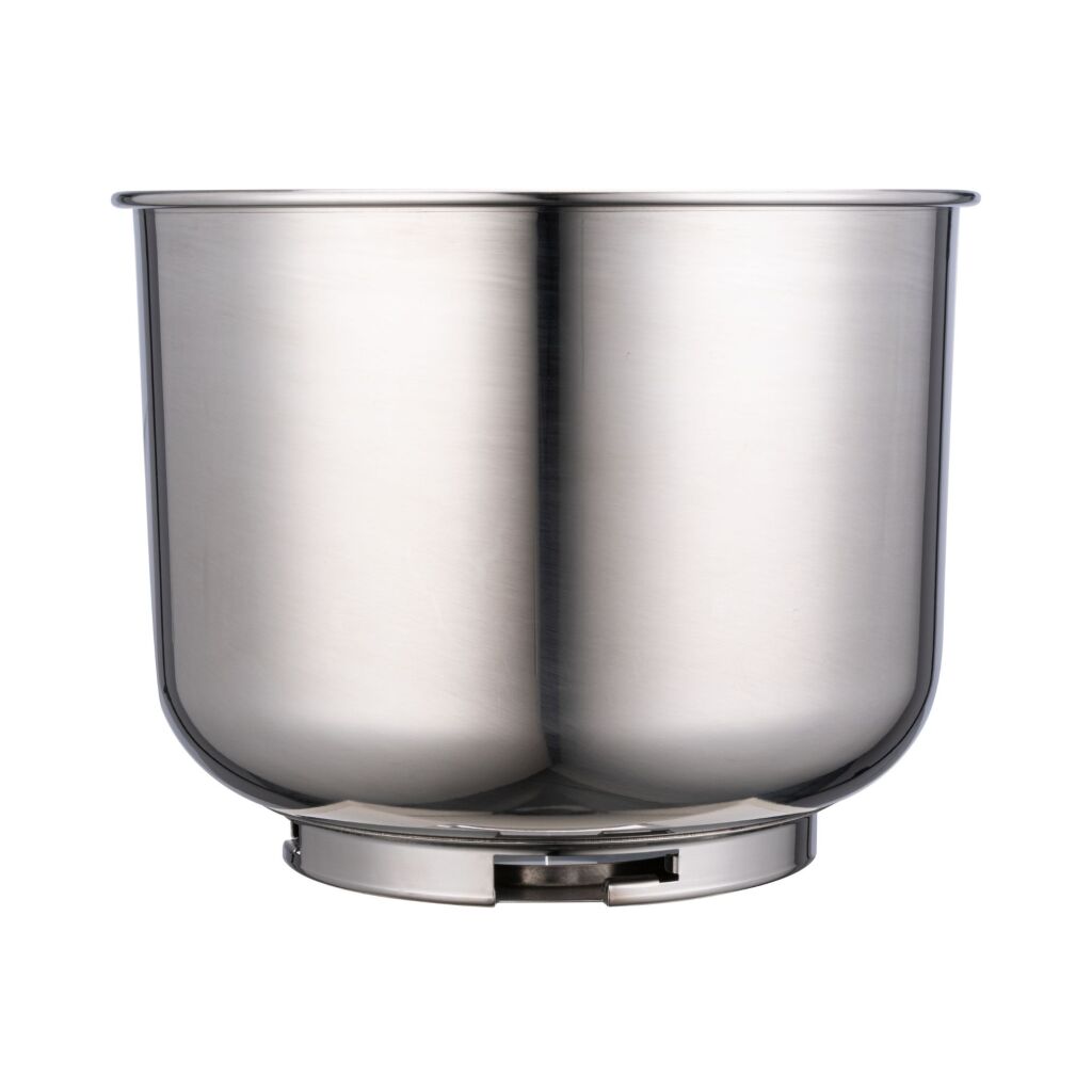 Eine 7-Liter Edelstahl-Rührschüssel mit gebürsteter Oberfläche auf der Außen- und polierter Oberfläche auf der Innenseite.