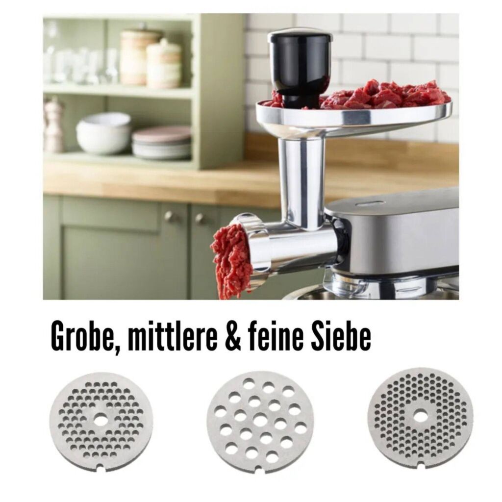 Der Fleischwolf bietet dir die Freiheit, frisches Hackfleisch, Wurst oder sogar kreative Gemüsemischungen zu kreieren. Mit diesem vielseitigen Zubehör kannst du ganz einfach deine Lieblingsrezepte zubereiten.